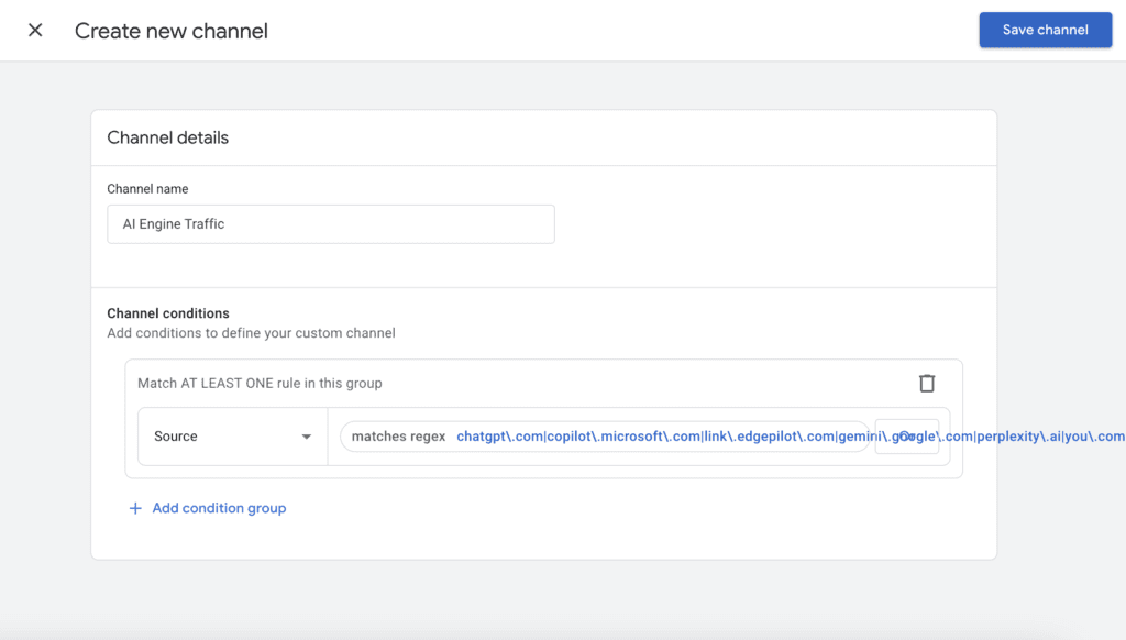 By the end of this guide you will have a custom channel group that isolates AI engine traffic, ready to help supercharge your digital marketing going forward.